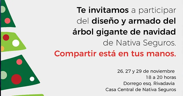 Los interesados podrán acercarse el martes 26, miércoles 27 y viernes 29 de noviembre a Nativa Seguros, Dorrego esquina Rivadavia, entre las 18 y las 20 horas para diseñar objetos que decorarán el árbol navideño, junto a la artista plástica Claudia Umpiérrez.